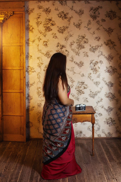 Monochrome Ajrakh Hand-Printed Modal Silk Saree